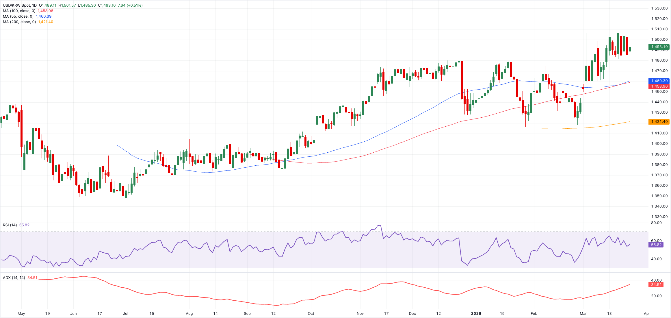 然而,貨幣反映出的是截然不同的宏觀現實。美元兌韓元(USD/KRW)近期測試了1515附近,為近20年來的最高水平。該貨幣對突破1510區域的走勢由以下熟悉因素驅動: