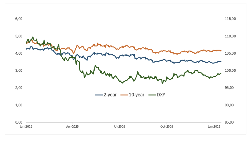 美元的上漲與美國2年期國債收益率的強勁反彈相呼應。曲線的其他部分則大多處於整合模式,而長期收益率在週後期實現了適度的回升。