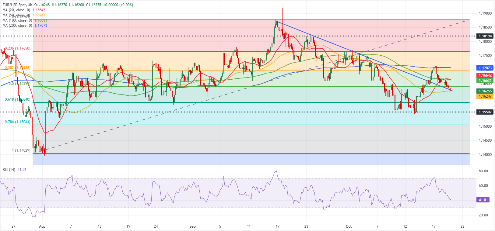 歐元/美元收於100日簡單移動平均線(SMA)下方,目前位於1.1650,4小時圖上的相對強弱指數(RSI)指標跌破50,指向短期內的看跌傾向。