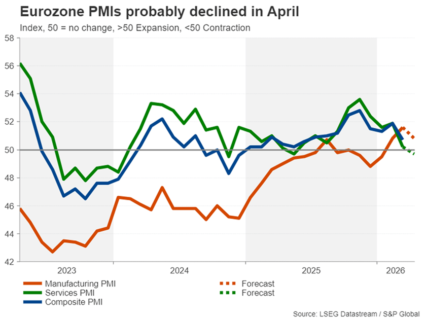 如果4月的初步採購經理人指數(PMI)進一步惡化,可能會加劇市場的悲觀情緒,增加滯脹的風險。更積極的一面是,英國經濟在2026年前兩個月的開局似乎比預期強勁,因此PMI的任何利好意外都將減少英格蘭銀行保持謹慎的理由,尤其是在與高於預期的消費者物價指數(CPI)數據結合時。