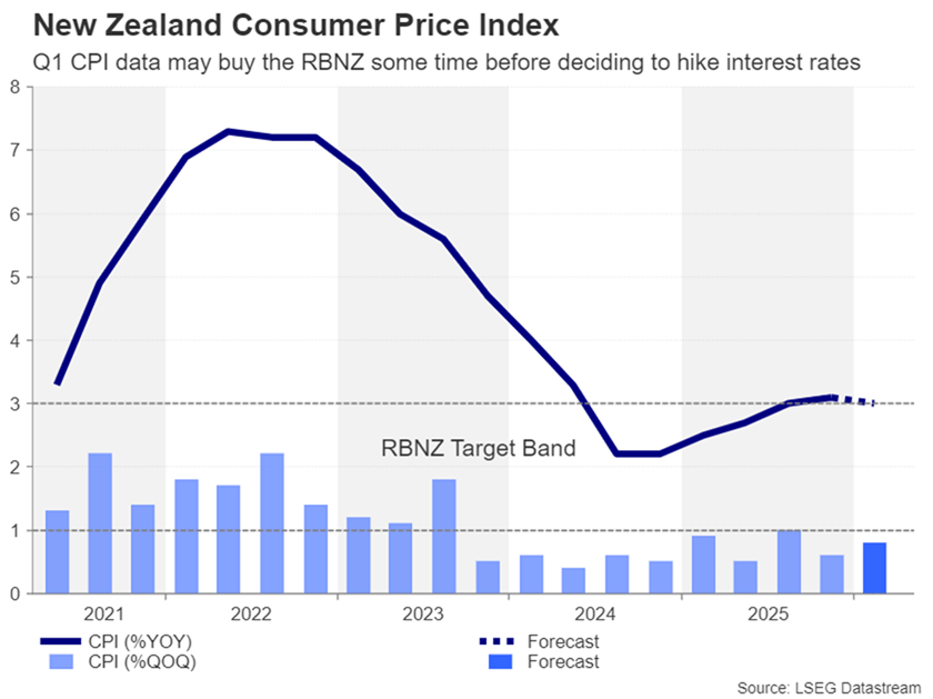 此外,紐元在4月未能跟上澳元的步伐,原因在於新西蘭儲備銀行(RBNZ)略顯令人質疑的鷹派傾向。紐儲行在本月初的會議上表示,任何加息決定都將取決於是否看到第二輪通脹效應的證據,這與全球同行的立場相呼應。