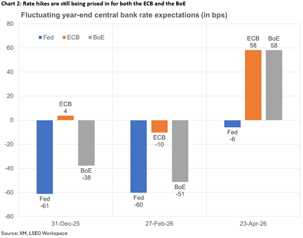 另一方面,美國股市表現更佳,忽視了中東局勢和2026年聯準會降息概率下降的影響。目前的財報季推動了情緒轉變,但隨著Alphabet、微軟、亞馬遜和Meta將於週三公布業績,蘋果將於週四公布,樂觀情緒將面臨考驗。其他關鍵財報還包括石油巨頭埃克森美孚和雪佛龍。
