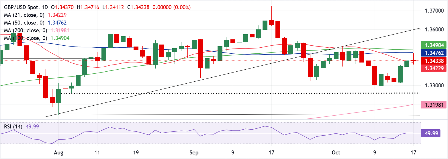 在此過程中,該貨幣對在週四的日線收盤中重新奪回了關鍵的21日簡單移動平均線(SMA),位於1.3424。