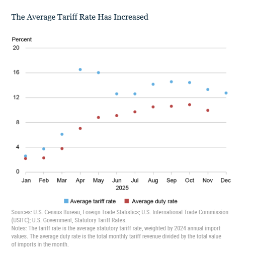 1. 通脹應該下降。儘管特朗普否認對通脹的影響,但紐約聯邦儲備銀行最近的一項研究顯示,在2025年期間,美國進口的平均關稅率從2.6%上升至13%。該報告稱:"我們發現近90%的關稅經濟負擔落在美國企業和消費者身上。"最近的通脹數據令人擔憂:根據PCE價格指數,12月為3%。實際上,較低的關稅應該有助於減輕壓力。但這需要一些時間,前提是新宣布的15%關稅不會生效。如果是這樣,通脹可能會保持在3%左右,或者更糟,繼續上升。
