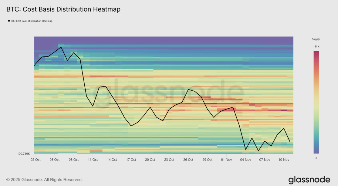 報告進一步解釋,賣方疲憊和在100,000美元附近的重新積累提供了短期支撐,但缺乏強勁的後續需求。