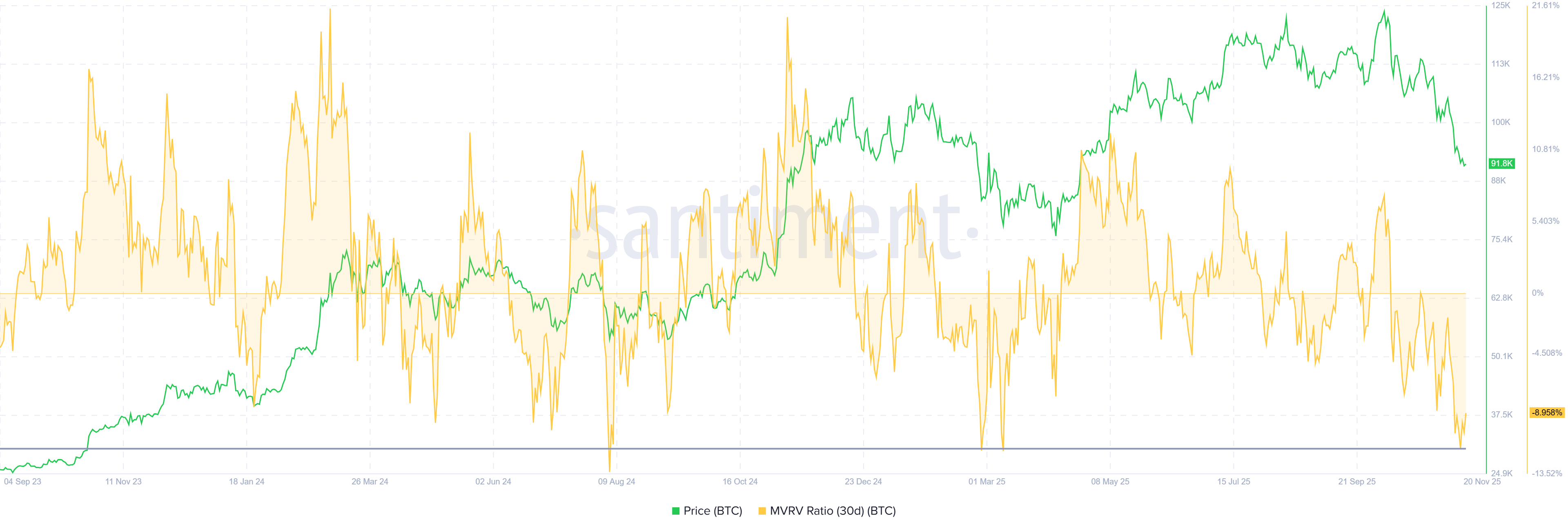 截至週四撰寫時,比特幣(BTC)價格穩定在92,000美元附近,牢牢保持在關鍵心理價位90,000美元之上——如果維持在該區域,可能支持短期反彈。市場情緒在週三略有改善,此時美國上市的現貨比特幣交易所交易基金(ETF)錄得超過7500萬美元的溫和流入,打破了自11月12日以來的提款趨勢。與此同時,鏈上數據表明比特幣可能被低估,並準備迎來短期反彈。