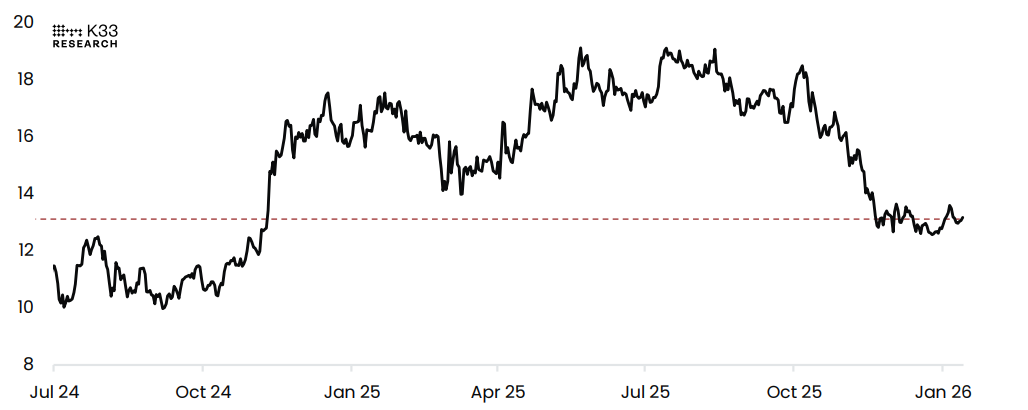 然而,BTC價格在週四稍微回落,此前美國初請失業金人數數據出爐。截止1月10日的一週,初請失業金人數意外下降至198K,低於市場預期的215K,並較前一週修正後的207K有所下降。該數據確認裁員仍然有限,儘管借貸成本持續高企,勞動力市場依然穩健,增加了美聯儲在未來幾個月維持利率不變的可能性。