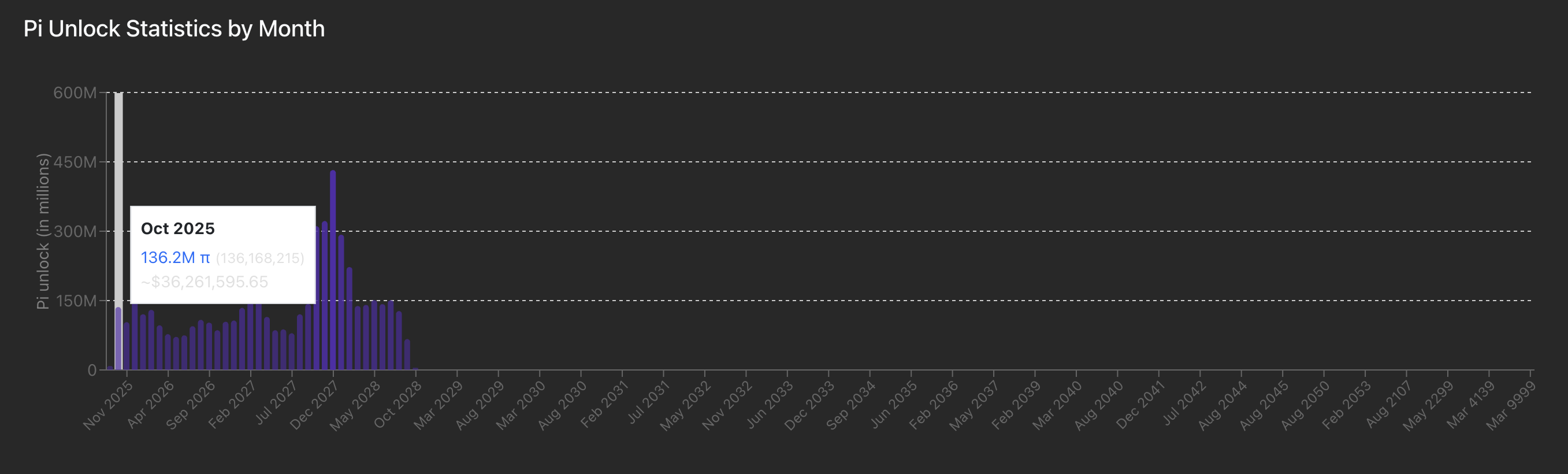 PiScan數據顯示,136百萬PI代幣將在十月解鎖,占流通供應量的略超過1%。這種供應的增加可能會在風險規避情緒主導的情況下增加賣壓。