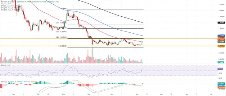 Sui(SUI)延續上漲走勢,週三交易價格超過0.95美元,此前一天漲幅超過10%。芝加哥商品交易所(CME)集團宣布將於五月初推出SUI期貨,進一步強化了看漲預期,顯示機構興趣日益增長。與此同時,美國與伊朗宣布兩週停火後,地緣政治緊張局勢緩解,持續支持更廣泛的加密市場情緒,進一步推動SUI的上漲動力。