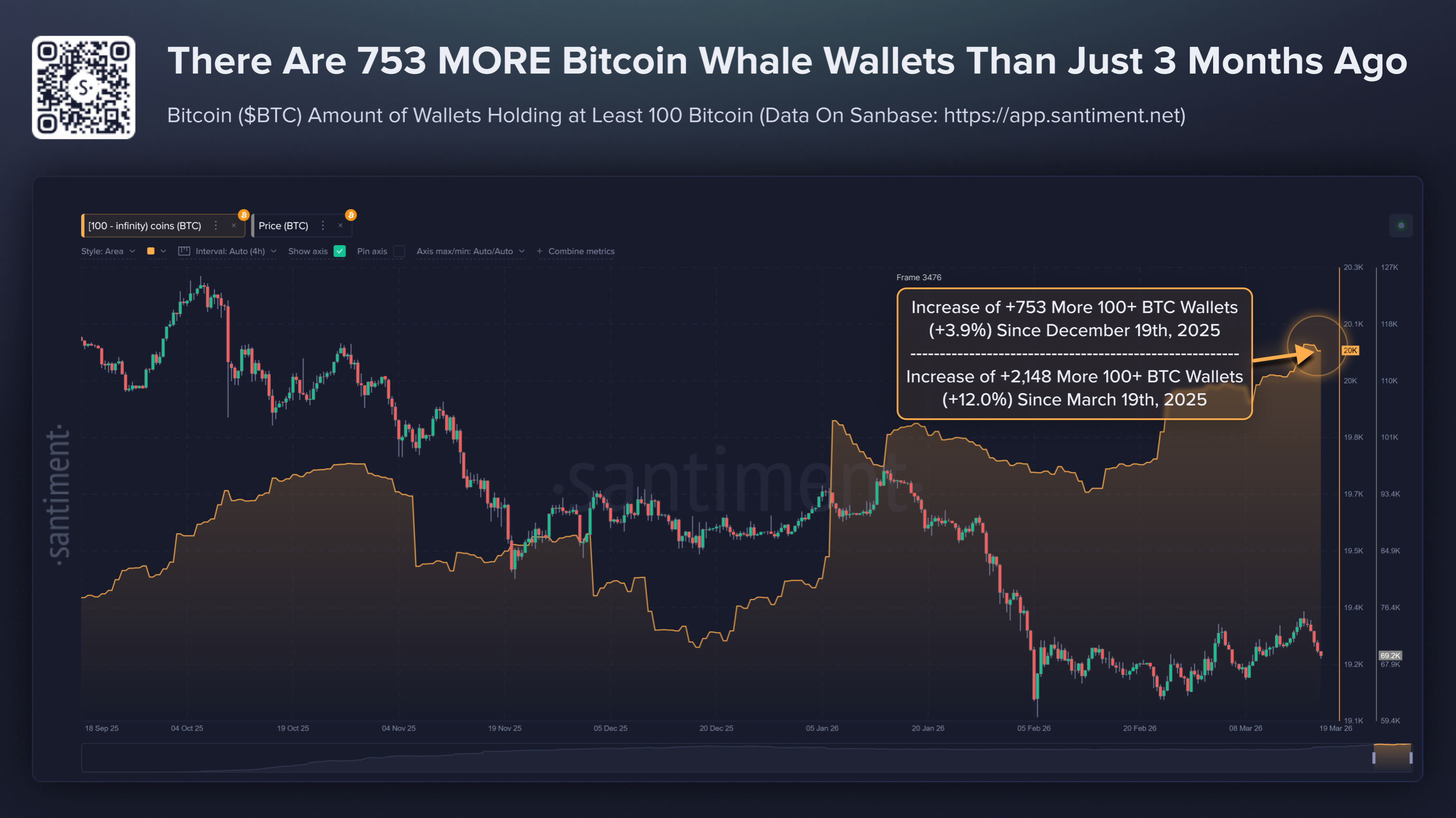 此外,自2024年12月19日以來,持有超過100枚比特幣的鯨魚錢包數量增加了3.9%,自2025年3月19日以來增長了12%,反映出儘管中東局勢緊張,鑽石手投資者仍然保持強烈信心。