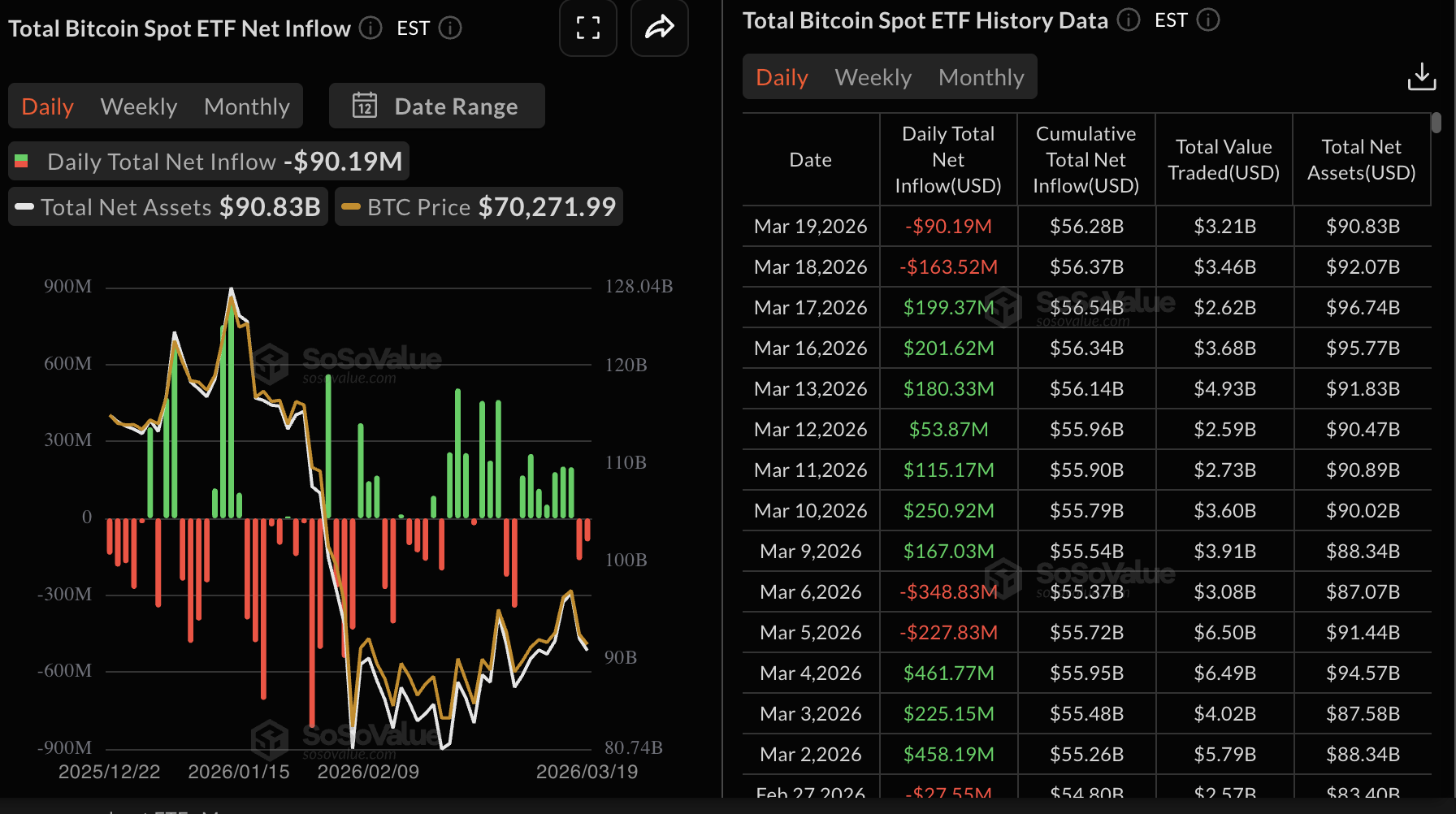 在現貨比特幣交易所交易基金(ETF)連續七天資金流入終結後,比特幣的興趣在週中普遍降溫。正如報導,美國上市的ETF在週三出現了1.63億美元的資金流出,且這一趨勢延續至週四,投資者撤出約9,000萬美元。