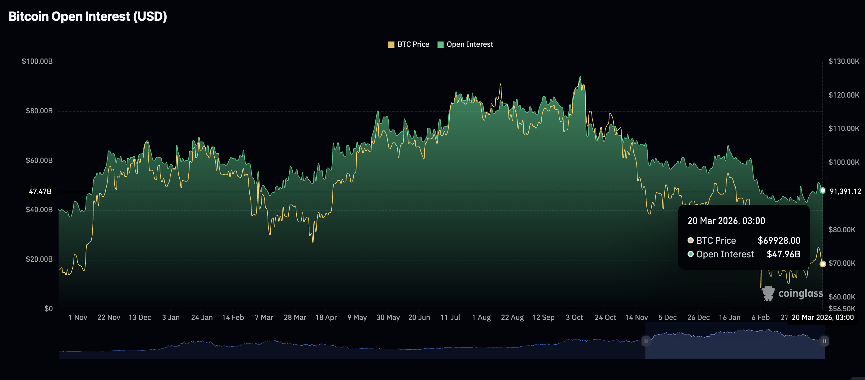 散戶投資者放緩了衍生品購買,導致比特幣期貨未平倉合約(OI)從前一日的479.6億美元降至週五的479.6億美元。如果這一下降趨勢持續,可能會增加上方壓力,從而限制比特幣的上漲潛力。