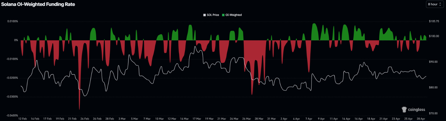 此外,資金費率也支持積極觀點。CoinGlass的Solana未平倉合約加權資金費率週二轉為正值,週三為0.0018%。該正值表明多頭支付空頭,顯示看漲情緒。