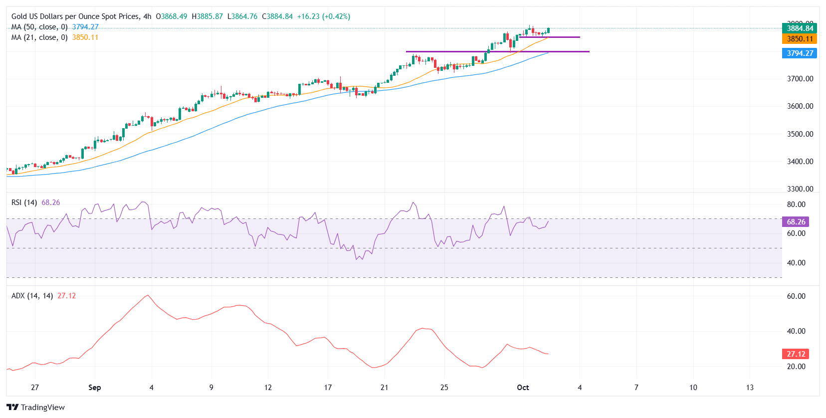 在歐洲市場平靜的交易後,黃金在週四下半場獲得動能,價格上漲至3,900美元附近。圍繞美元的賣壓以及由於政府關閉而引發的謹慎市場情緒,助推XAU/USD進一步上漲。