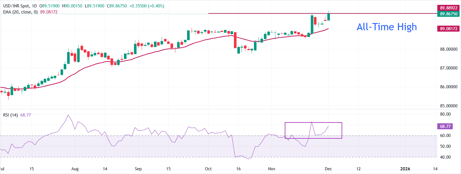 技術分析:USD/INR跳升至接近90.00