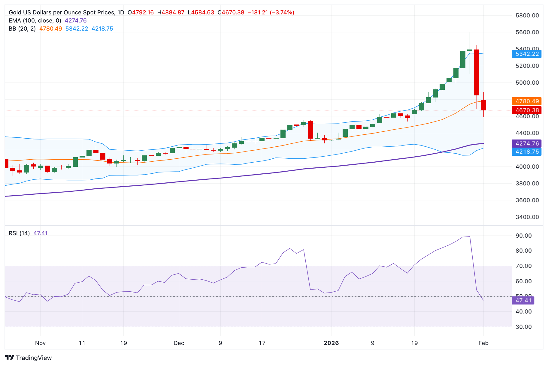 - 關於凱文·沃什將被提名為下一任美聯儲主席的報導對金價施加壓力。