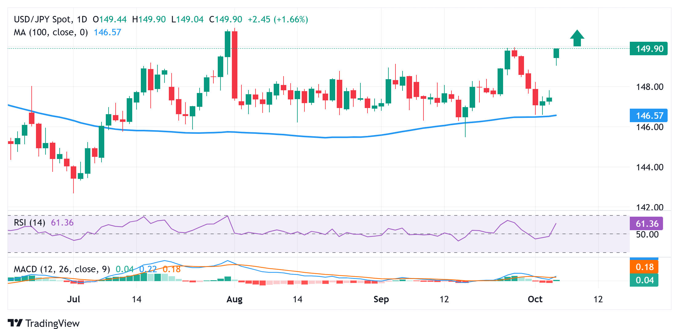 美元/日圓可能在150.00附近加速正向動能,突破9月高點