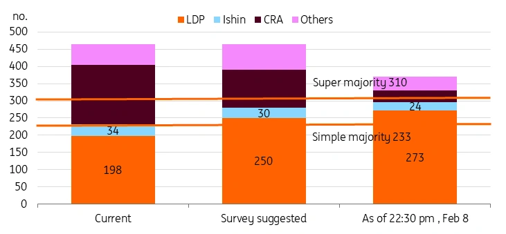 自民黨聯盟有望在眾議院贏得絕對多數席位