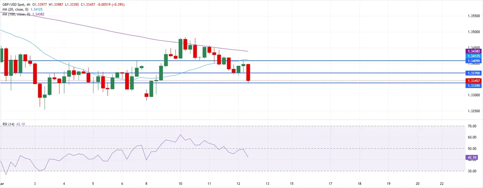 英鎊(GBP)在1.3500閾值下對美元(USD)處於看跌盤整階段,仍然脆弱。美元在其主要貨幣對手中連續第二週上漲,繼續受益於中東戰爭升級帶來的避險資金流入。隨著伊朗對海灣國家及美國基地的攻擊加劇,安全避險仍然是全球主題。美國和以色列分別繼續轟炸德黑蘭和貝魯特,戰爭在每一天中加深。