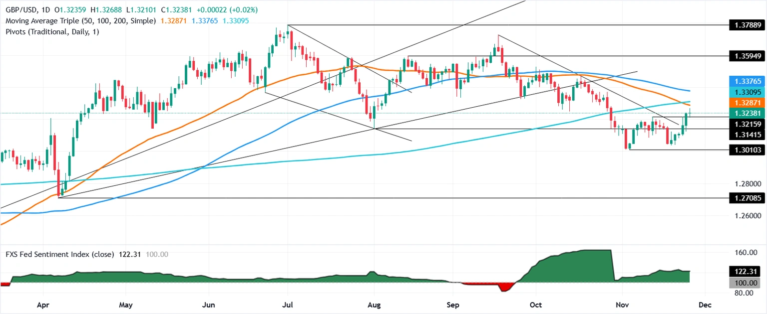 英鎊/美元因市場在預算後傾向看空而下滑至1.3220