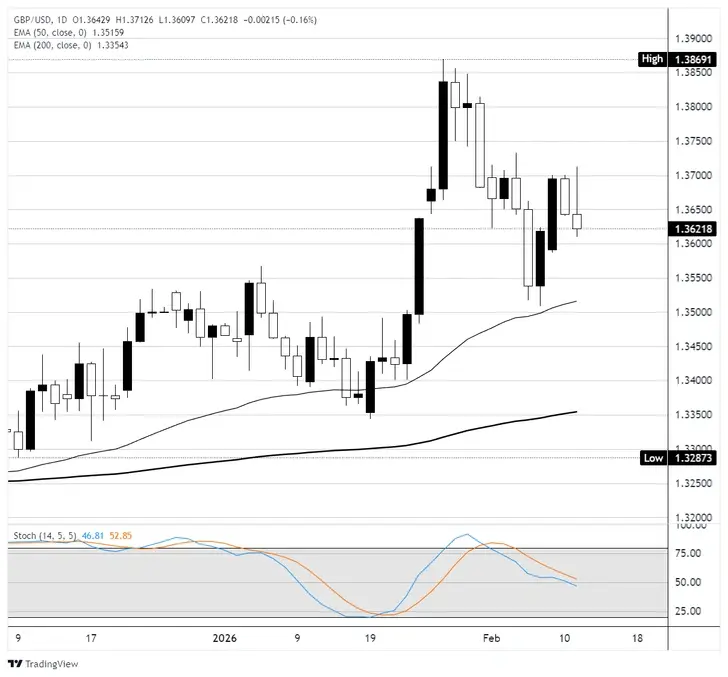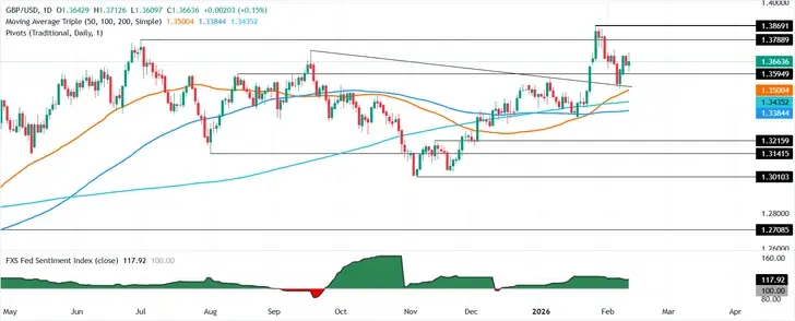 英鎊在週三從四年高點回落,受到英國央行(BoE)鴿派立場和英國政治不確定性的影響,即使美國美元因疲軟的勞動力市場修正而走弱。英國央行在2月份的會議上維持利率不變,但以5-4的貨幣政策委員會(MPC)投票結果令市場感到意外,四名成員支持立即降息25個基點,結果比預期更為鴿派。