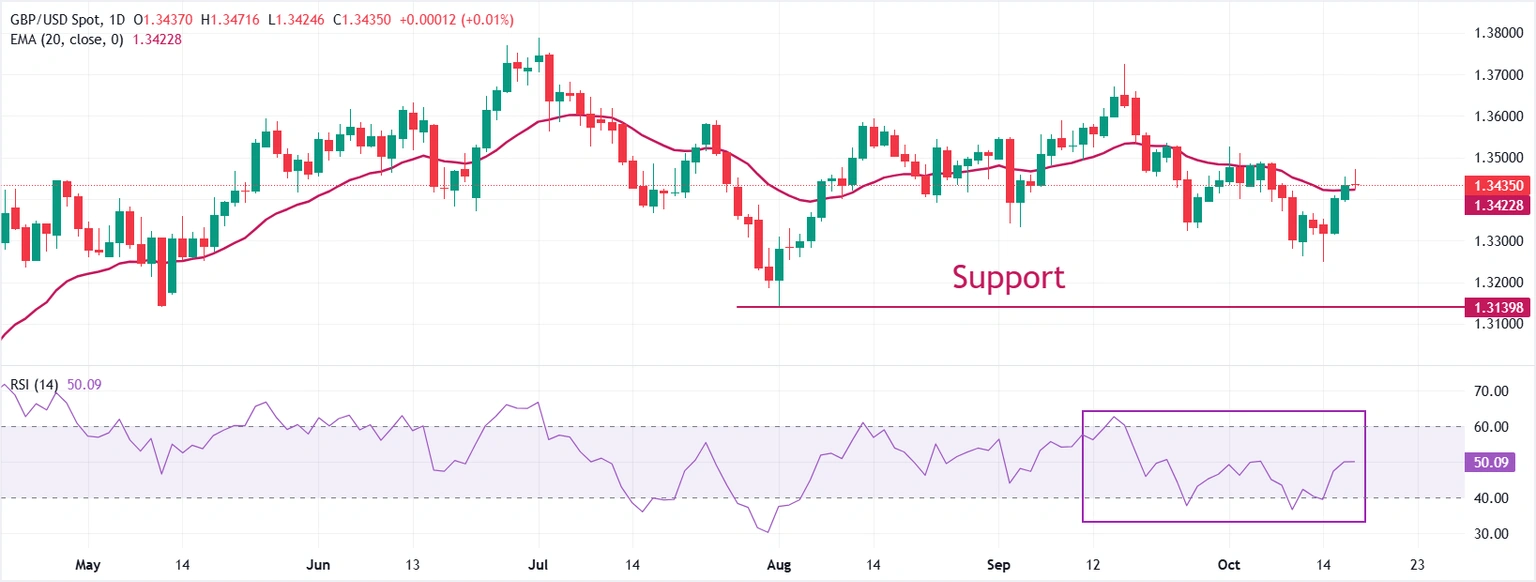在週五的歐洲交易時段,英鎊(GBP)兌美元(USD)在1.3470附近持平。儘管美元指數(DXY)面臨賣壓,GBP/USD 貨幣對仍然平穩,暗示英鎊疲軟。
