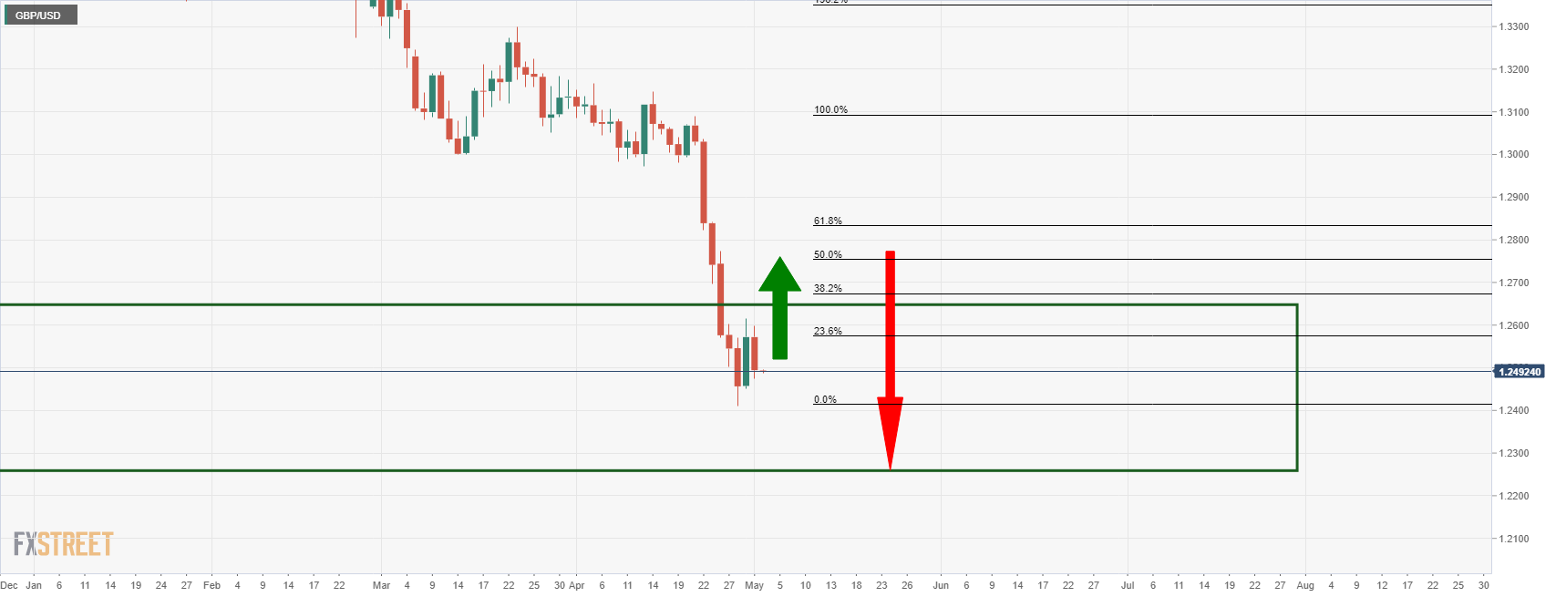 英鎊/美元正接近週線需求區域,在觸及 2020 年 7 月低點 1.2250 附近之前還存在更多下行空間。